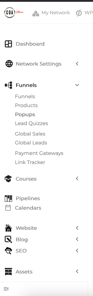 - My Sites - clicking this will launch a list of websites and funnels you have in your account.