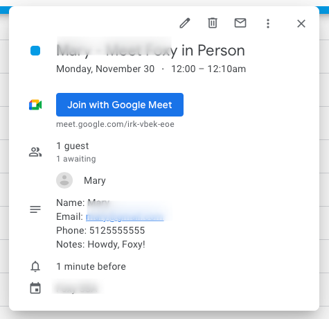 When the customer finishes booking an appointment, the new Google Calendar event will include a Join with Google Meet location.